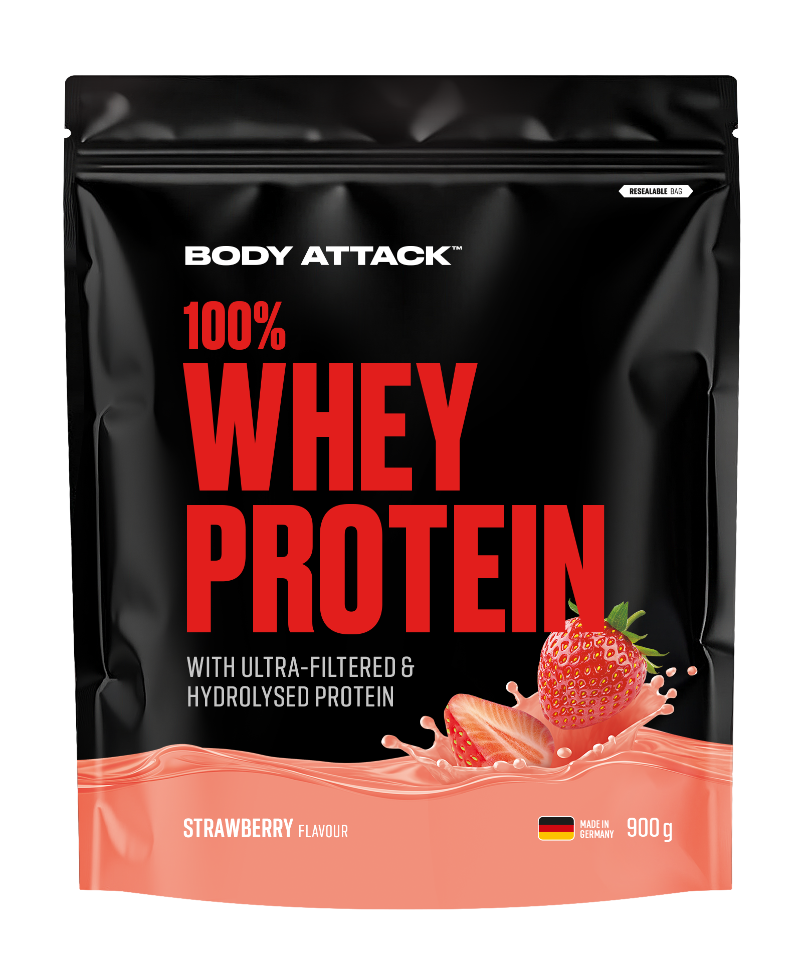 In deinen Eiweiß Shake gehört nur bestes Proteinpulver: Das WHEY PROTEIN. Aber warum? Es ist eine von zwei Proteinarten Whey und Casein und wird aus Molke gewonnen. Dieses Eiweiß punktet mir seiner besonders hohen biologische Wertigkeit. Heißt: Es werden mehr Proteine in deinem Körper umgewandelt, die dir beim Aufbau deiner Muskulatur helfen. Von allen Eiweißen wird Whey vom Körper am schnellsten aufgenommen. Und wir setzen sogar noch einen drauf! Neben reinem Whey Konzentrat besticht das 100 % WHEY PROTEIN durch zusätzliches Hydrolysat. Einfach gesagt: „aufgespaltenes Protein“. Dein Benefit? Das Eiweiß wird noch schneller verwertet - also ein echter Volltreffer für dein Ziel Muskelaufbau!